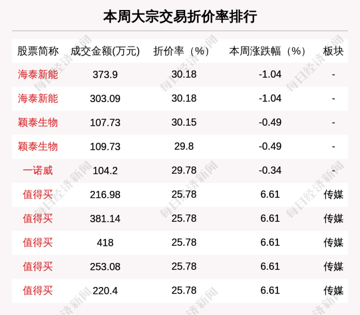 折价交易方面,本周有485笔大宗交易折价率超过10%。